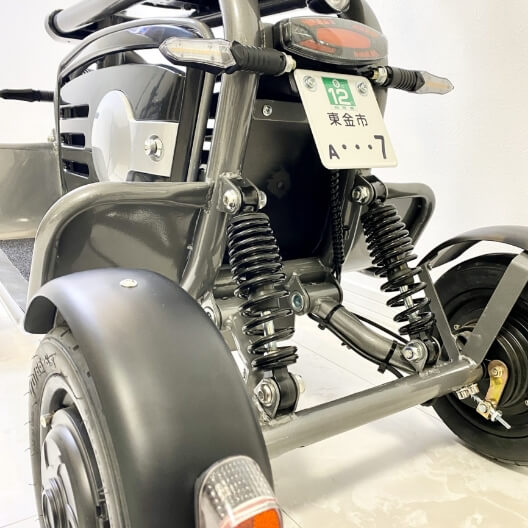 後輪ツインモーターは特定小型の上限600Wに対してモーターパワーを600Wまで引き上げた2代目のパワーを継承し、三代目の「REBORN(リボーン)」ではブレーキが前輪ディスクブレーキ、後輪ドラムブレーキとアップデートが完了。