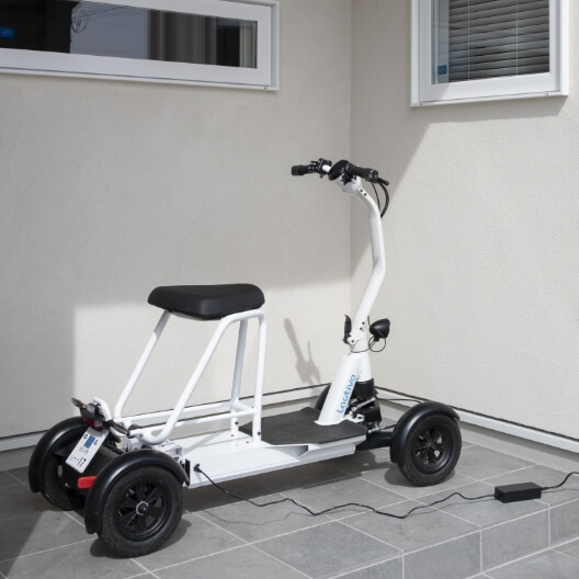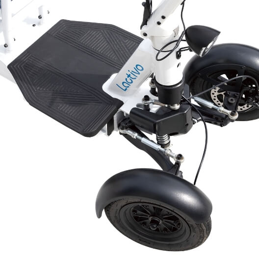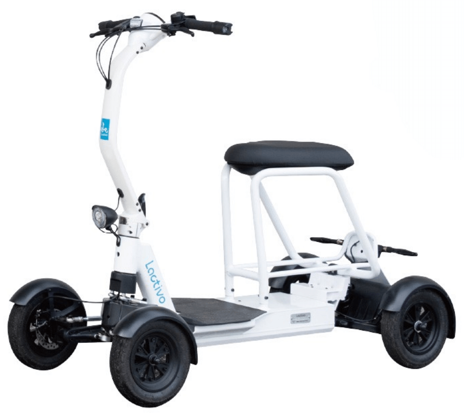 「Lactivo」は、オールアルミボディと折りたたみ可能なハンドルを持つ特定小型四輪車です。足元は低く広々としており、クッションシート下のスペースにスーパーのバスケットを収納できます。最大積載量は30kg、最大荷重は100kgです。